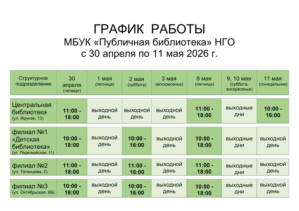 Для удовлетворения общекультурных, образовательных, научных, информационных, досуговых потребностей пользователей, повышения комфортности обслуживания Публичная библиотека Новоуральского городского округа предоставляет библиотечные услуги разных видов (документные, справочные, новостные).