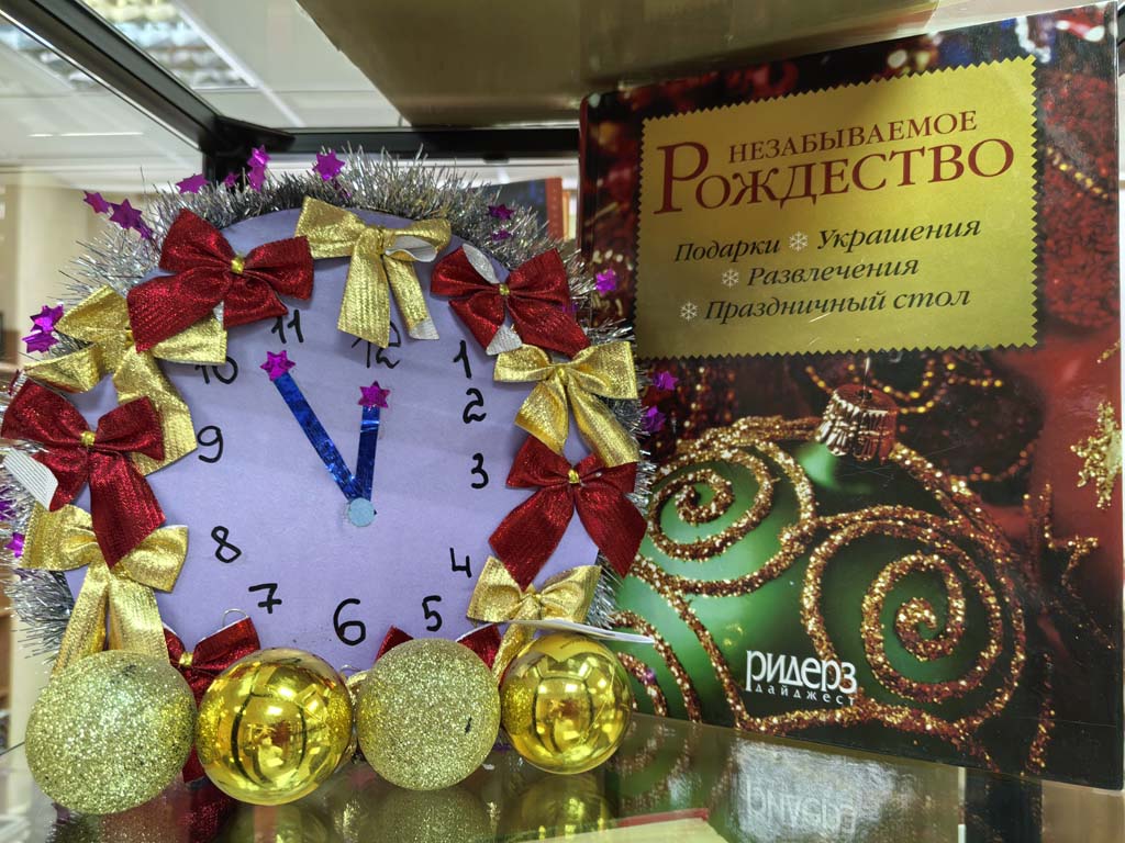 Перед наступлением Нового года в библиотеке «Читай-город» состоялся увлекательный творческий конкурс «Когда часы 12 бьют». Участникам было предложено создать оригинальные часы, отражающие атмосферу праздника и зимней сказки. Каждый участник проявил свою индивидуальность, используя разнообразные материалы и техники. На конкурс поступило более 60 красивых работ. Яркие и оригинальные новогодние часы, которые стали настоящим украшением библиотеки.