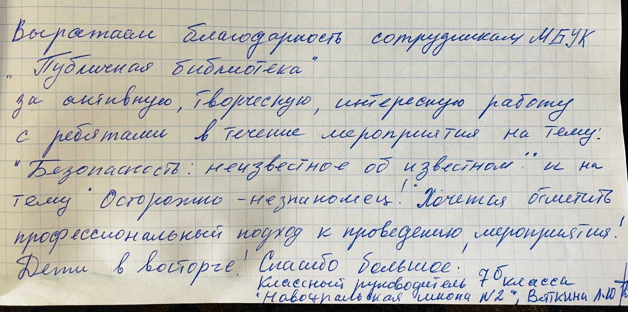 В рамках проекта "Неизвестное об известном" наши библиотекари подготовили интересные игры, викторины и мастер-классы, которые помогли школьникам лучше понять, как правильно вести себя на дороге: что отвлекает и мешает, как мыслить и что надо учитывать, что такое "слепая зона", как думает водитель и есть ли у грузового транспорта "зимняя резина"… Все вопросы вызывали бурное серьезное обсуждение.
