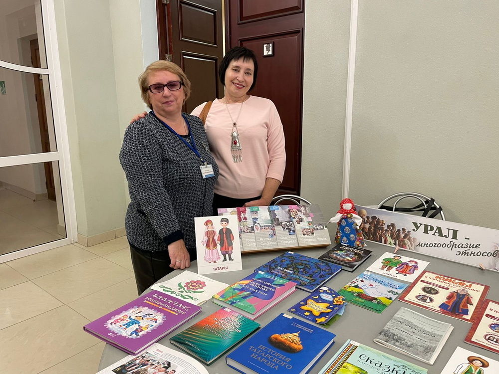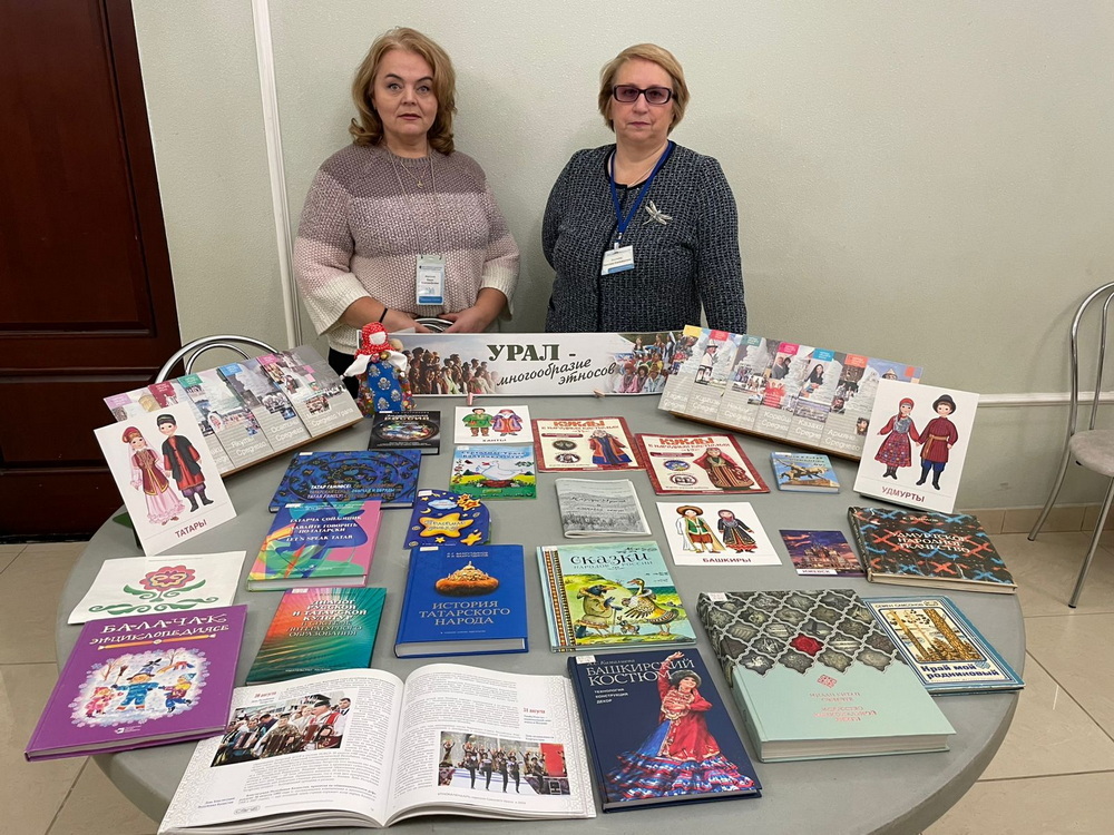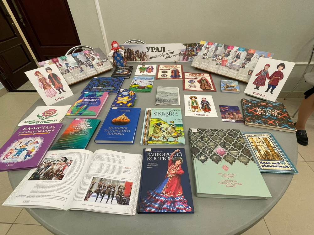 Нашими коллегами была организована информационно-просветительская выставка «Урал – многообразие этносов», где мы (совсем немного!) представили книги, альбомы, открытки, путеводители и т.д., которые отражают культурное разнообразие и традиции народов, проживающих в нашем регионе.