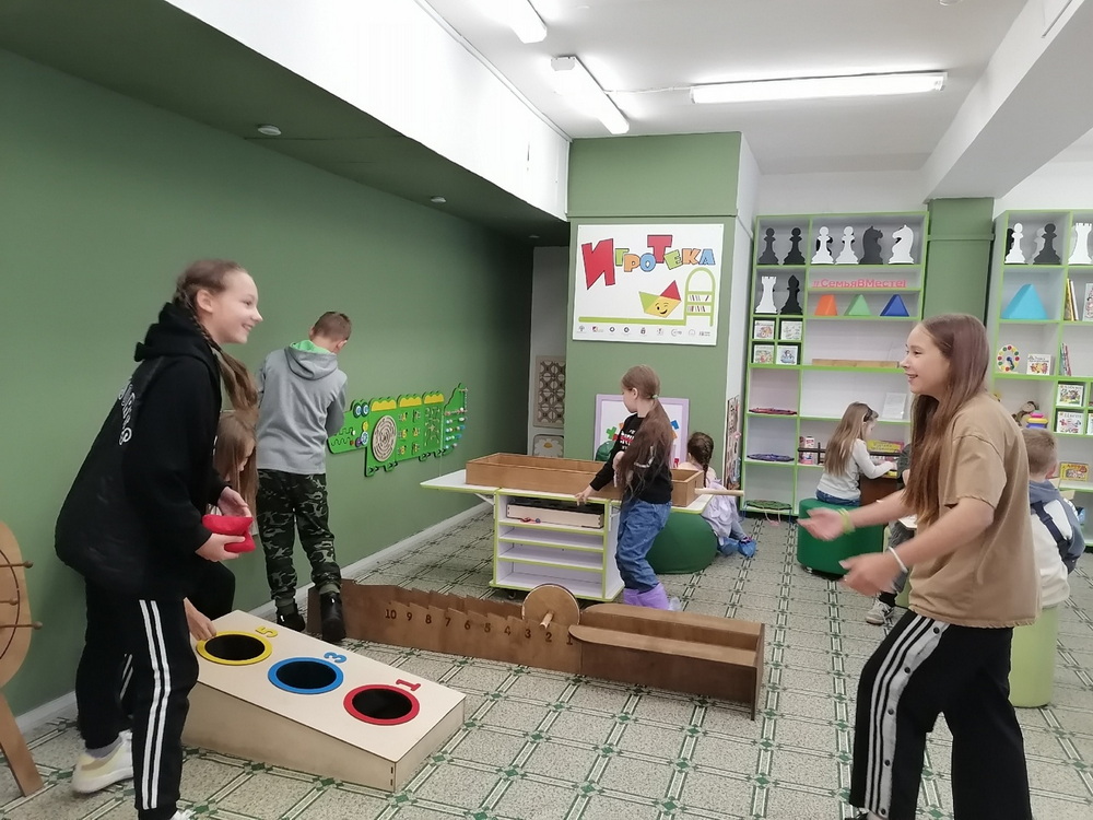 Сегодняшняя игротека стала прекрасным примером того, как любовь к играм стирает границы между возрастами! Первоклашки, второклассники и даже уверенные пятиклассники пришли поиграть в наши большие деревянные игры.
