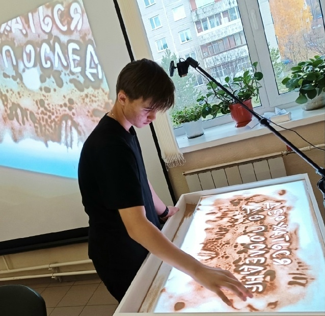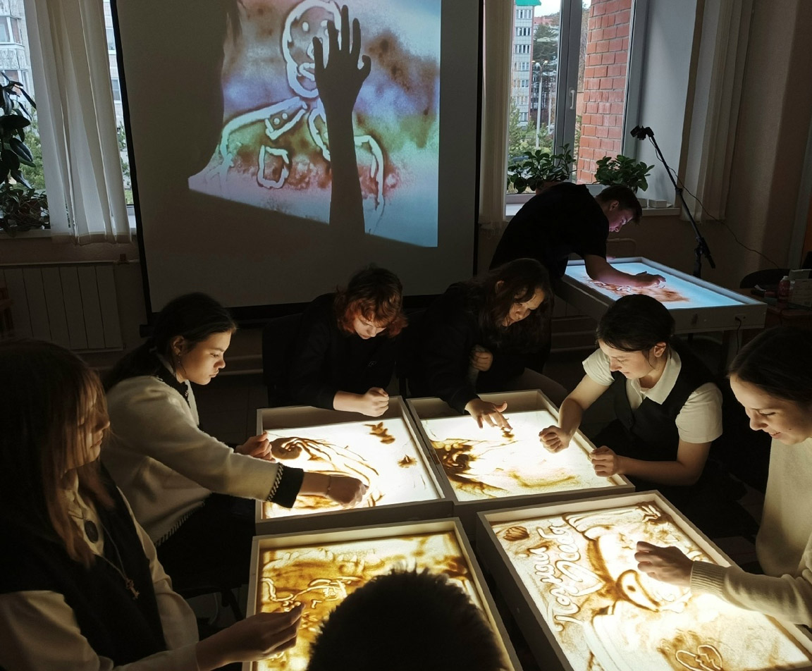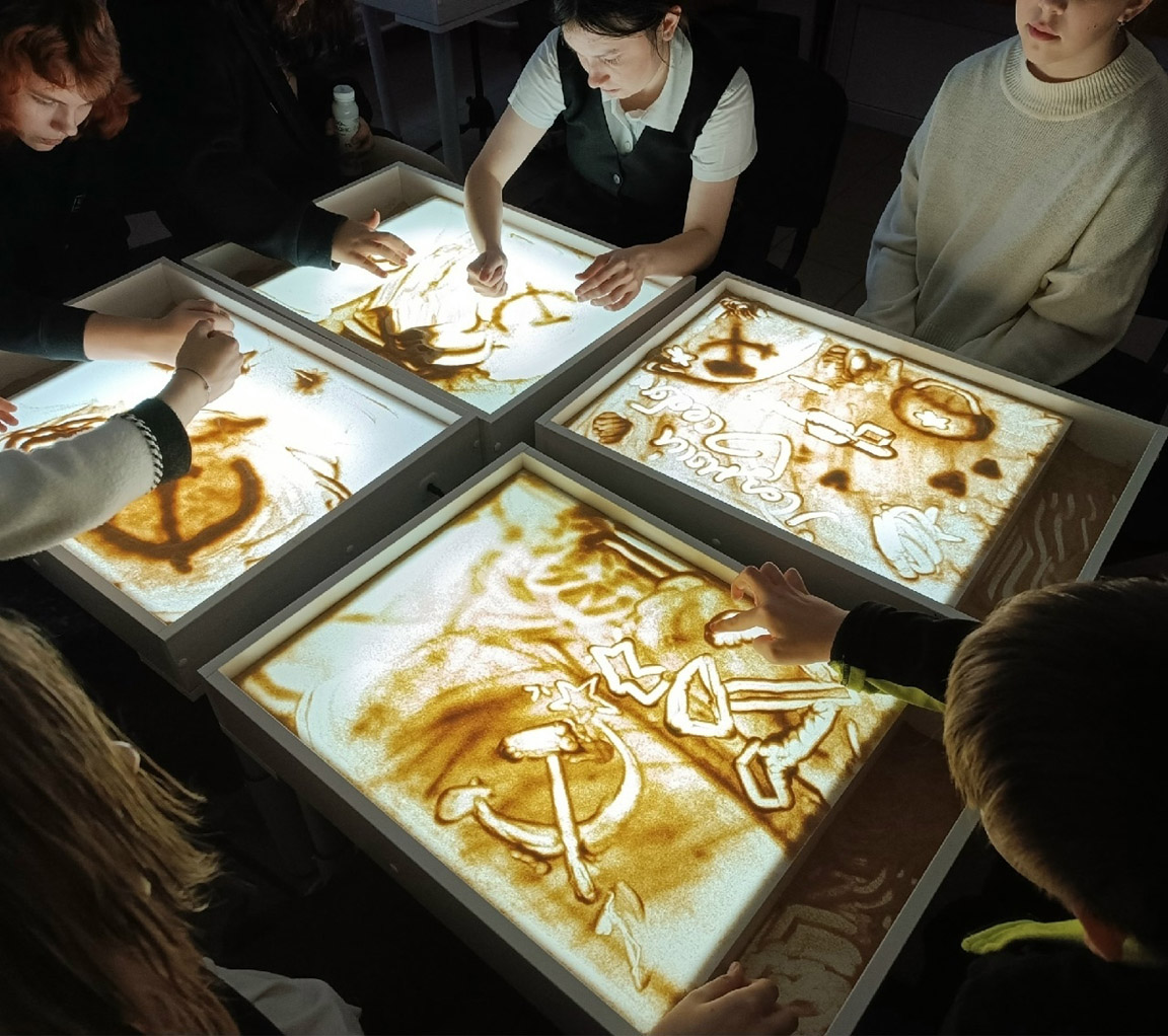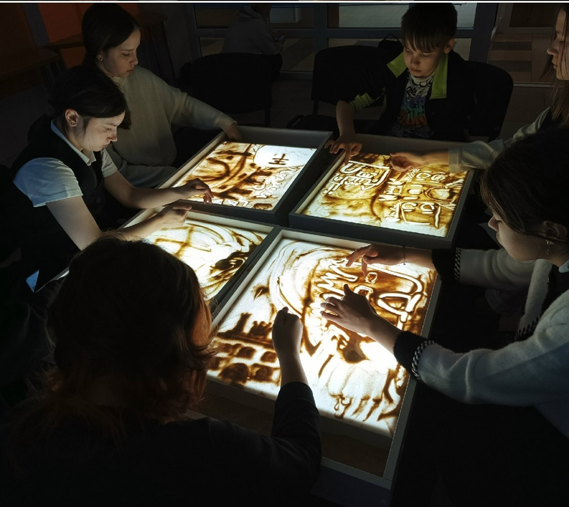В песочной студии «Рыжий Лис» библиотеки «Читай город» кипит творческая работа: ребята из объединения ЦВР «Познай себя» активно готовятся ко Второму открытому фестивалю анимационных фильмов «Мы этой памяти верны», приуроченному к 80-й годовщине Победы в Великой Отечественной войне.