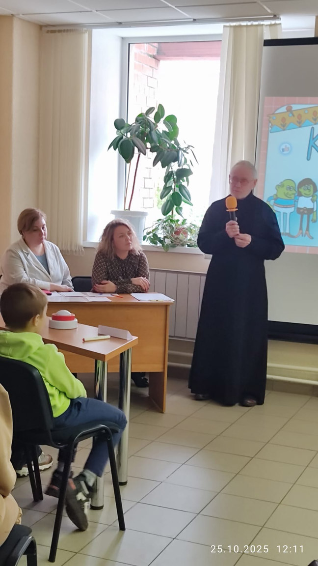Мероприятие открыл служитель храма Казанской Божией Матери Алексей Александрович, который рассказал о важности семьи в воспитании нравственных ценностей и поделился мудрыми советами по воспитанию детей.