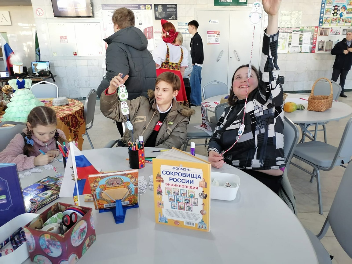 Посетители всех возрастов с удовольствием делали гирлянду из матрёшек – уникального символа России.