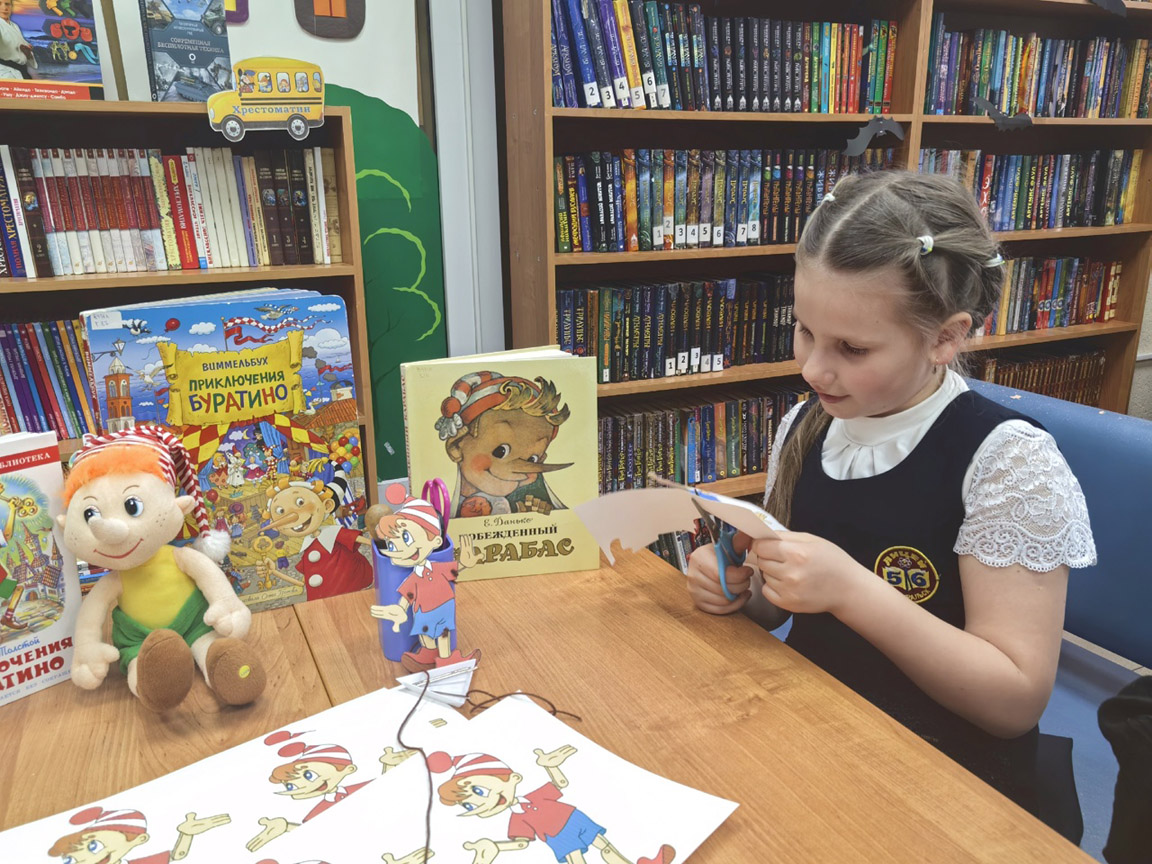 На территории библиотеки «Читай-город» в мастерской Самоделкина ребята отметили праздник по‑особенному: своими руками создали игрушку‑дергунчик в образе любимого деревянного мальчишки.