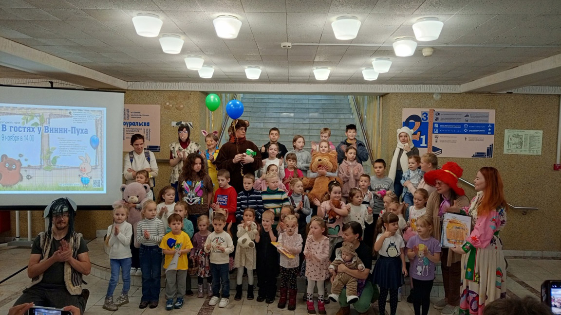 «В гостях у Винни-Пуха» встретились около 300 читателей и Винни-Пух, Пятачок, Кролик, Ослик, Совунья, Белый мишка и ведущая. Актёры-библиотекари и волонтёры, исполнявшие мастерски роли смогли заинтересовать всех ребят и объединить в 4 группы, которые поучаствовали в активностях, выполнив задания на 4 станциях: