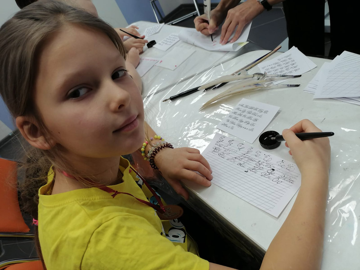 В этот день все желающие могли отгадать ребусы и загадки, поиграть в словарные игры и принять участие в мастер-классах «Литера «Ё». С увлечением и усердием выписывали дети и взрослые буквы с помощью перьев, приобщаясь к необычному виду творчества – каллиграфическому письму.
