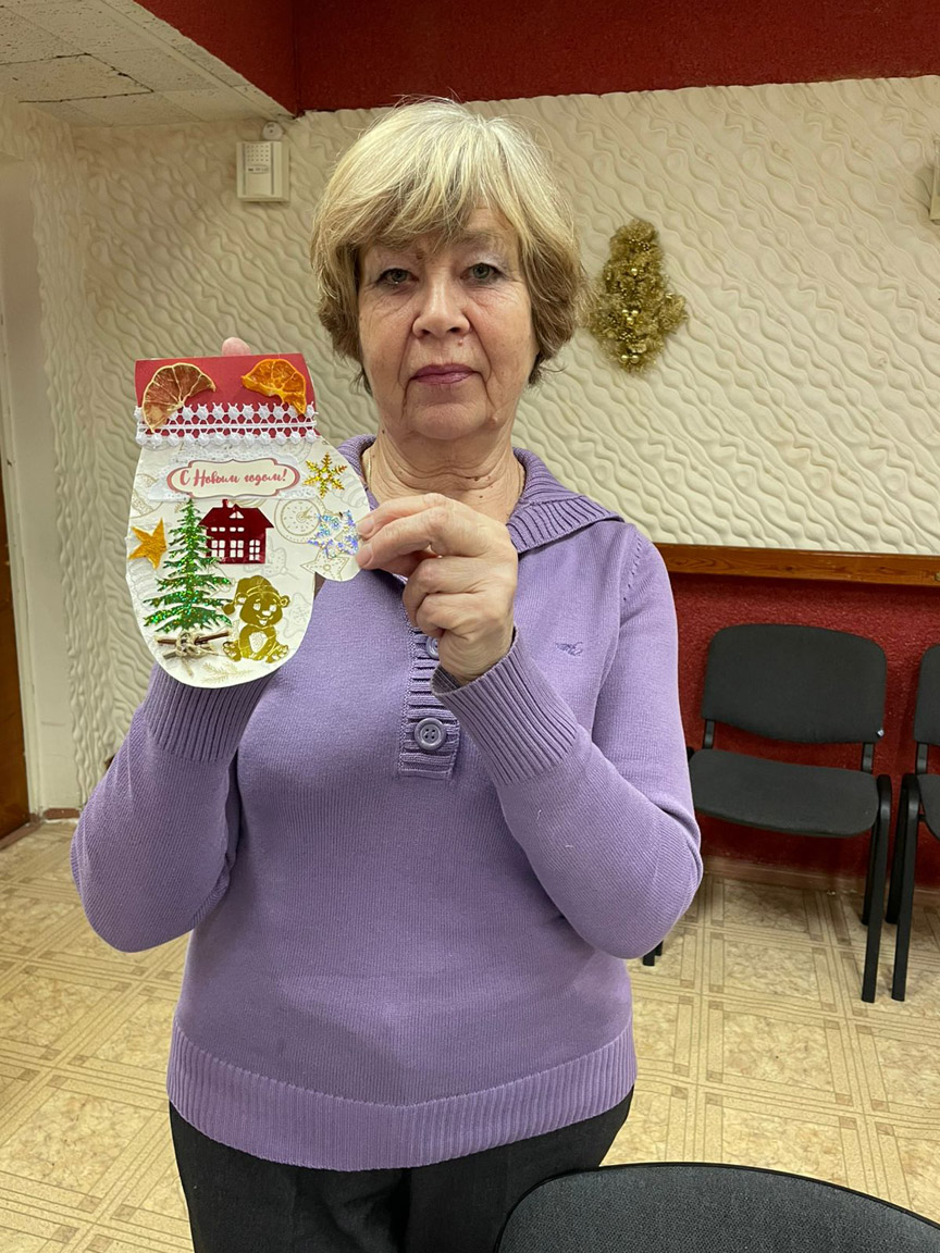 Мероприятие прошло в тёплой дружеской обстановке и было посвящено изготовлению праздничной открытки «Новогодняя варежка».