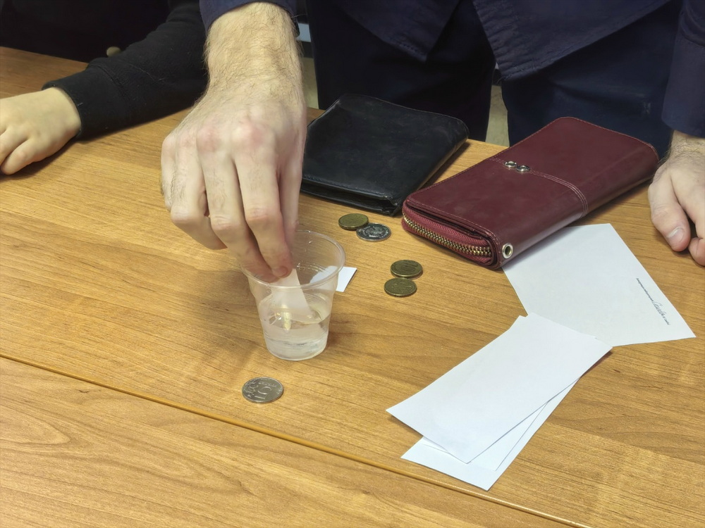 Ребята узнали, что такое деньги, познакомились с их различными видами, а также поучаствовали в занимательных экспериментах, выяснив плюсы и минусы современных монет и банкнот. Например, они проверили прочность разных купюр, попробовав их мять и сгибать, а также исследовали особенности металлических денег, сравнивая вес и форму монет разного номинала.