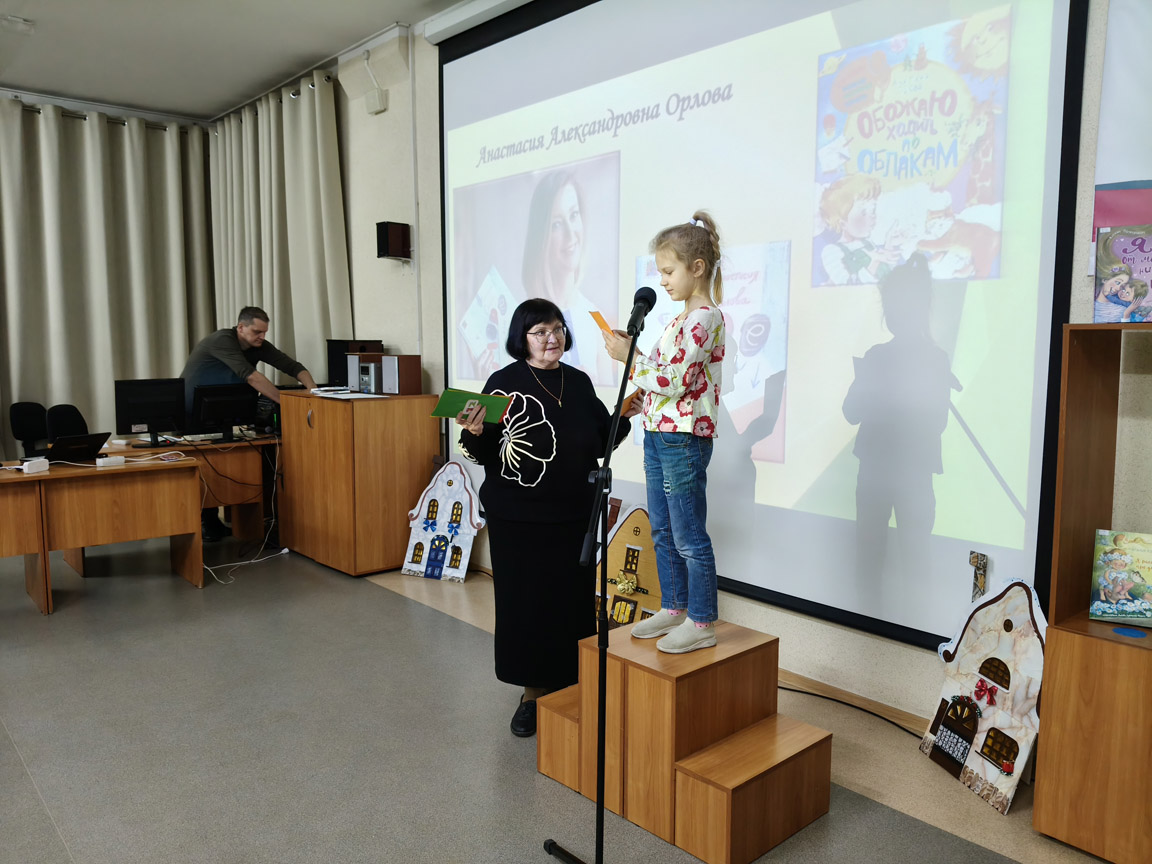 Мероприятие открылось поэтическим марафоном! Участники познакомились с удивительным миром творчества талантливых детских поэтесс: Ксении Валаханович, Натальи Карповой и Анастасии Орловой. Стихи звучали искренне и проникновенно, даря тепло каждому присутствующему. Самые смелые первоклассники читали прямо с высокого подиума в микрофон!