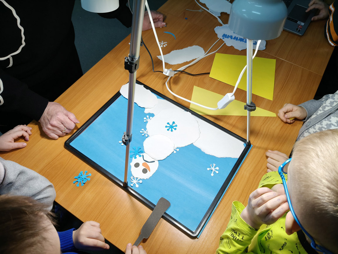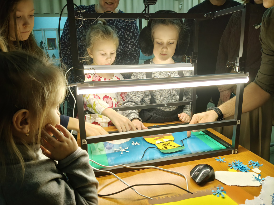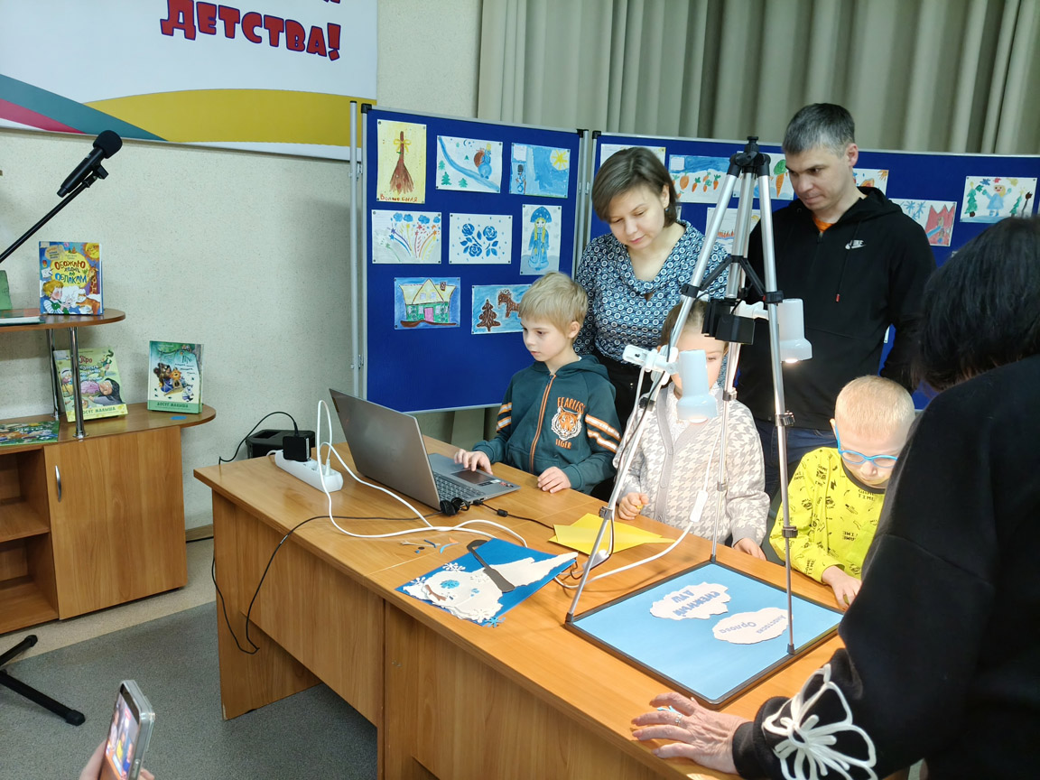 Затем началась самая увлекательная часть вечера: создание мультфильма! Дети и взрослые объединились в команды и принялись снимать фильмы по забавным стихам Анастасии Орловой, используя технику перекладной мультипликации. Каждый участник смог проявить свою креативность и фантазию, а поддержка родителей сделала процесс ещё более радостным и интересным.