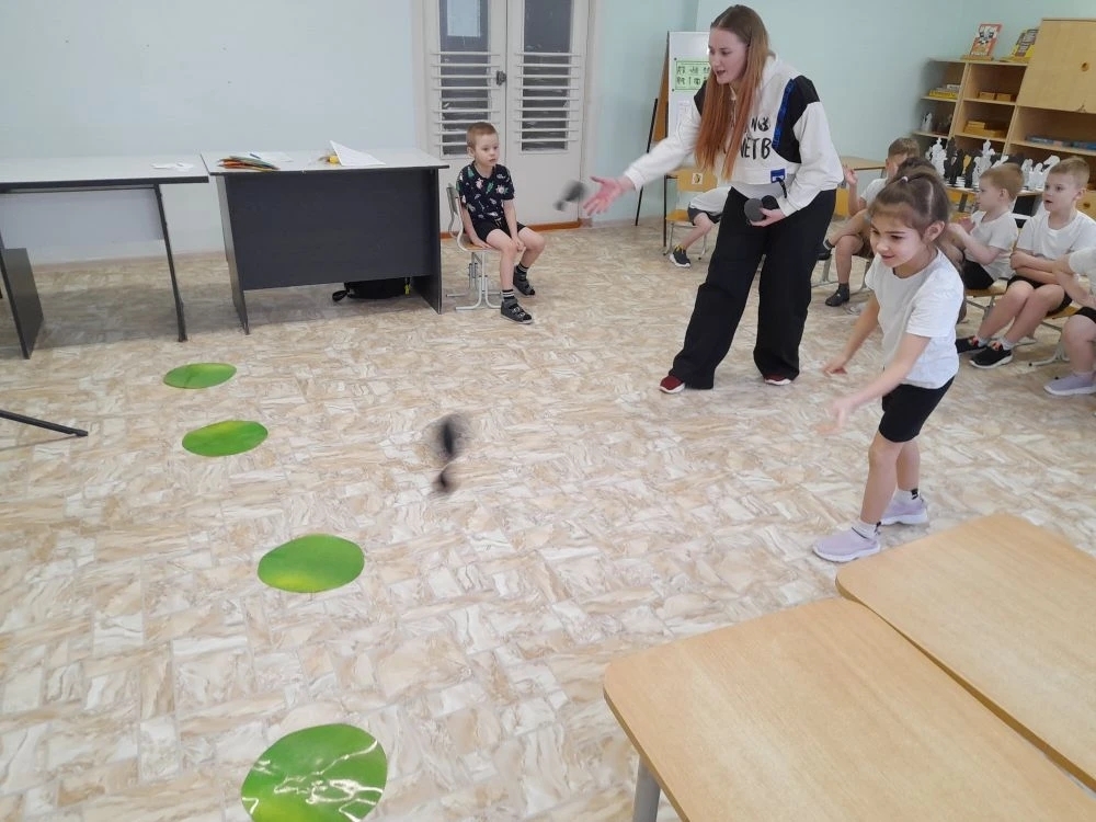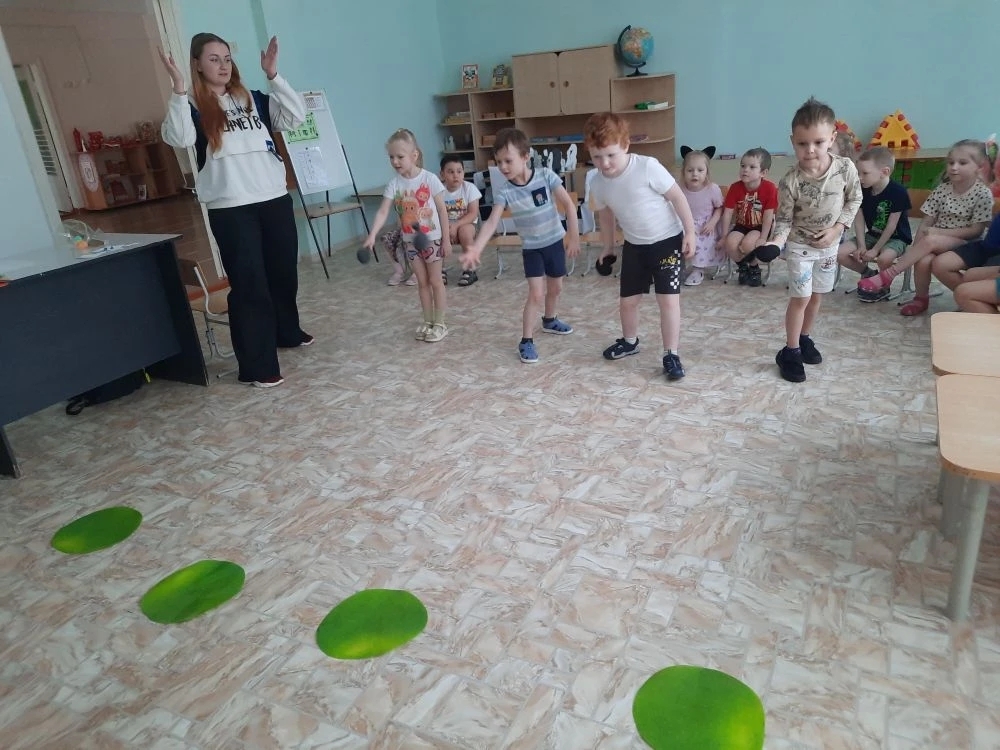 Наибольшее впечатление на детей произвели подвижные конкурсы. Проходя через «Болото», мальчишки и девчонки с увлечением прыгали по кочкам, стараясь удержать равновесие и не уронить шарик из ложки. В роли «Артиллеристов» все хотели проявить меткость: ребята очень серьезно прицеливались, рассчитывая силу броска, и искренне радовались каждому попаданию.