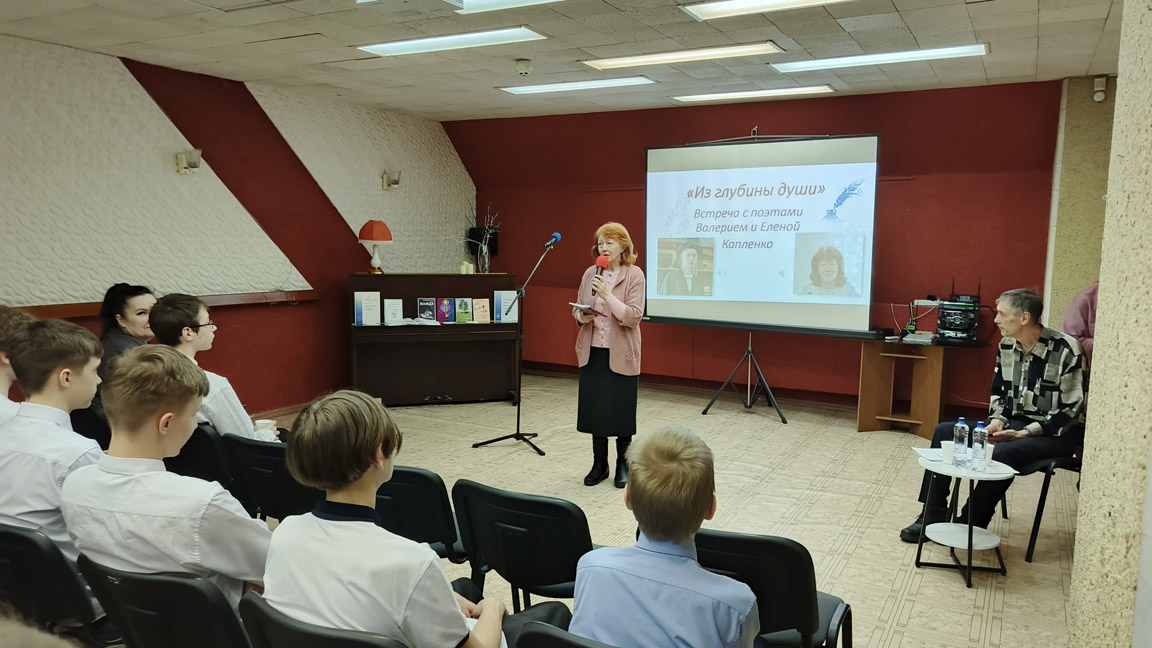 Встреча «Из глубины души» с известными новоуральскими поэтами Валерием Николаевичем и Еленой Геннадьевной Капленко собрала молодежь города. Поэты пользуются признанием среди русского литературного общества. Валерий Николаевич окончил филфак педагогического института, имеет степень кандидата филологии и публиковался в престижном журнале «Урал». Его супруга, Елена Геннадьевна, закончила знаменитый Литературный институт имени Горького в Москве и также известна своими публикациями в «Литературной газете». Авторы поделились с гостями воспоминаниями о своём творческом пути, прочли стихотворения разных жанров – лирические и юмористические. Особенно интересно слушателям было узнать секреты вдохновляющих идей и механизмы появления стихов. Встреча прошла тепло и душевно, подарив молодым жителям города новые впечатления и пищу для размышлений о роли поэзии в современной жизни.