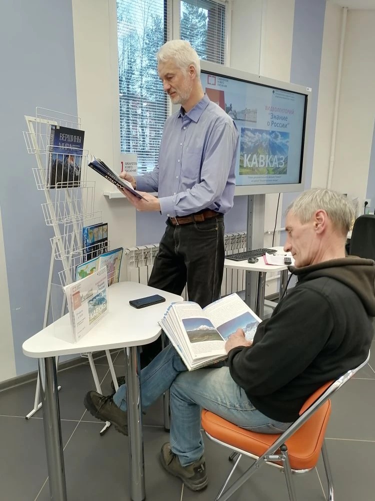19 марта в модельной библиотеки "ФиЛиН" в рамках видеолектория «Знание о России» читатели старшего поколения смогли совершить увлекательное виртуальное путешествие по Кавказскому региону благодаря просмотру документального фильма из цикла "Россия из окна поезда", представленного из электронных фондов Президентской библиотекой имени Б.Н. Ельцина.