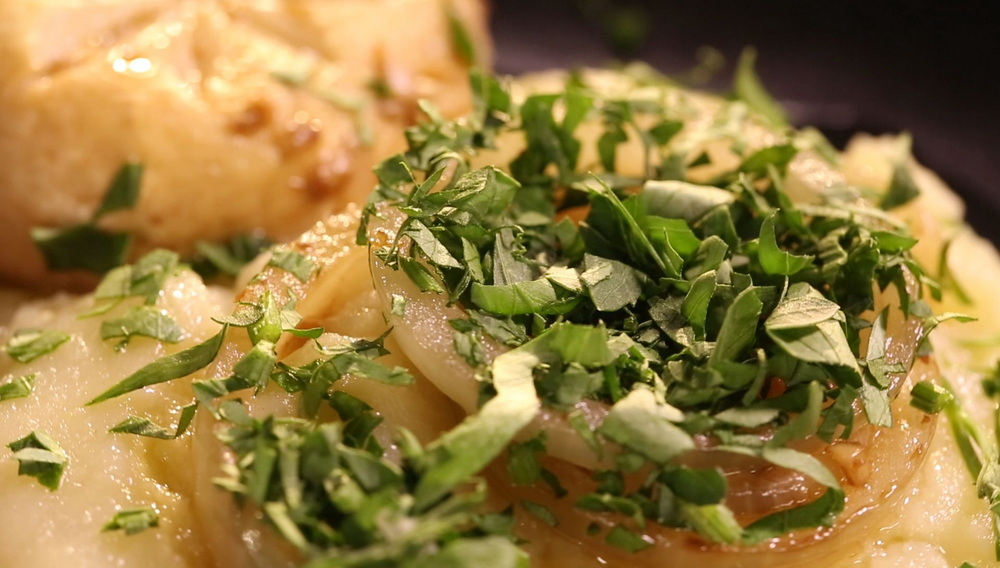 - Когда кисель загустеет, нарезать его на порции. При подаче сверху на кисель положить обжаренный на растительном масле мелко порезанный лук.