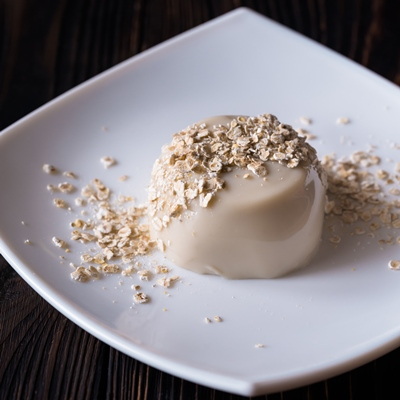 - Овсяные хлопья залить тёплой водой, чтобы их полностью покрыло.