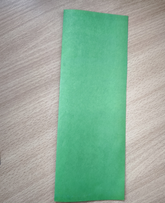 Зеленый лист, складываем его пополам и разрезаем ножницами. Это будет заготовка для стебелька.