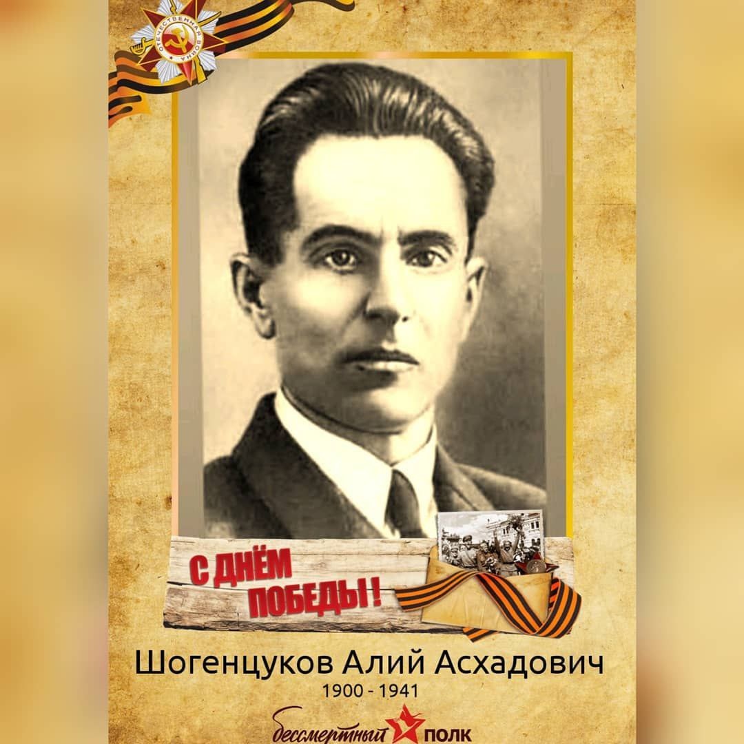 Когда началась Великая Отечественная война, Али Шогенцуков написал стихи, в которых призвал сограждан к защите Родины.