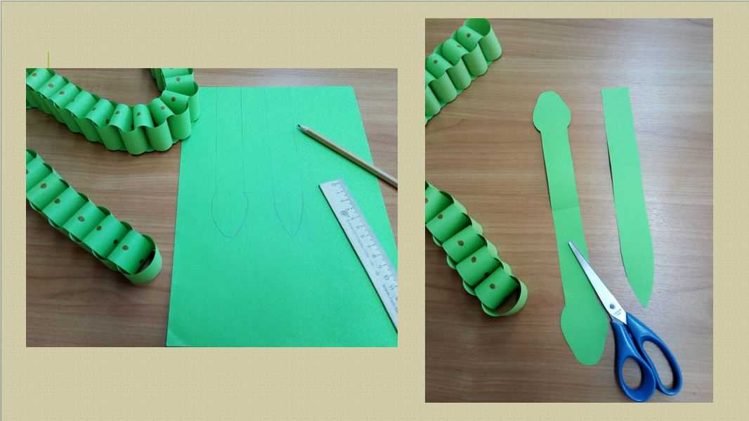 Рисуем голову и хвост змейки на бумаге, для этого нам нужно 2 детали размером 3х20 см.