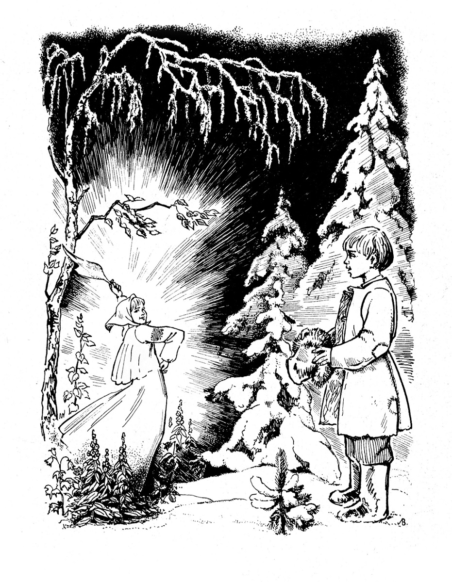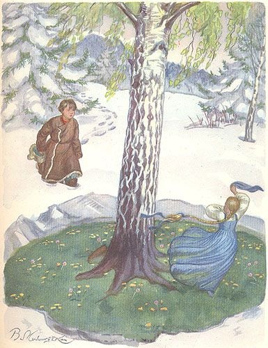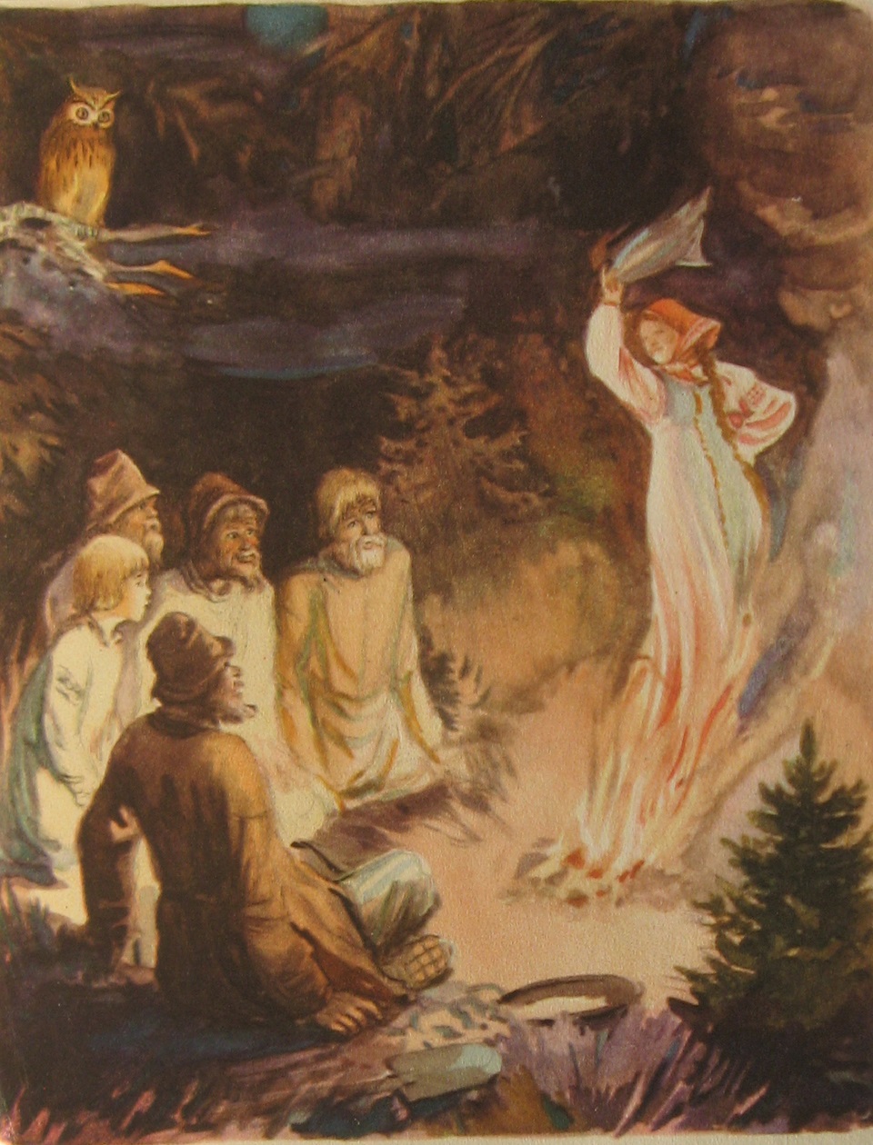 Она – хозяйка верхового золота, которое хранится в верхних пластах земли. Она умеет зимой лето делать – протанцует этак пару кругов – земля вокруг неё и оттает, даром что снег вокруг, трава зазеленеет, цветы расцветут.