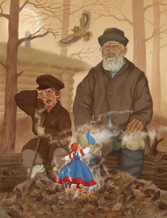 Огневушка-Поскакушка – в русских сказаниях махонькая сначала девчоночка, вроде куколки, с ладошку величиной, с рыжими волосами в голубеньком сарафанчике и с голубым платочком в руке.